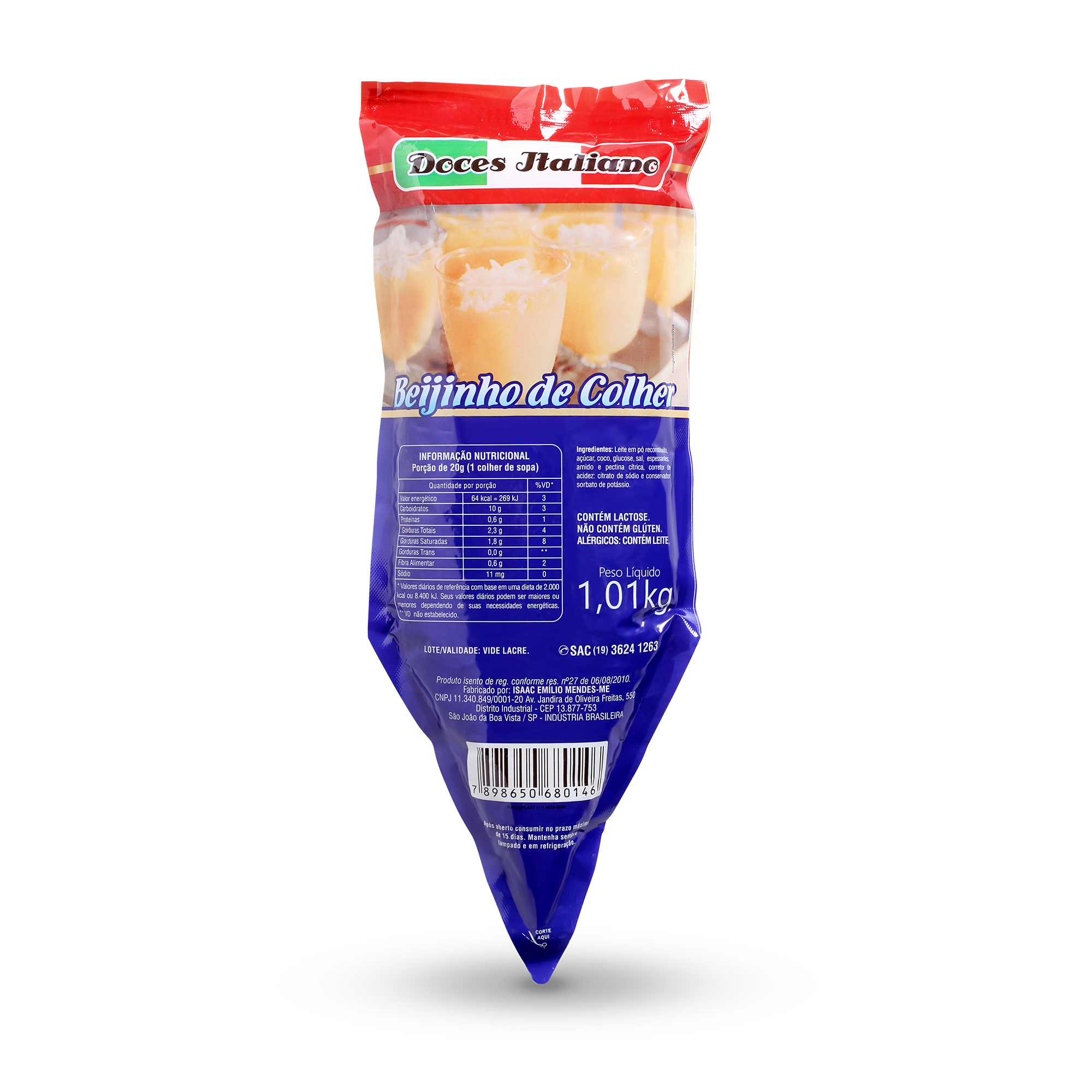 Leite em pó reconstituido, Açúcar, Coco, Manteiga, glucose, sal, espessantes, amido e pectina citrica, corretor de acidez, citrato de sódio e conservador de sorbato de potássio.